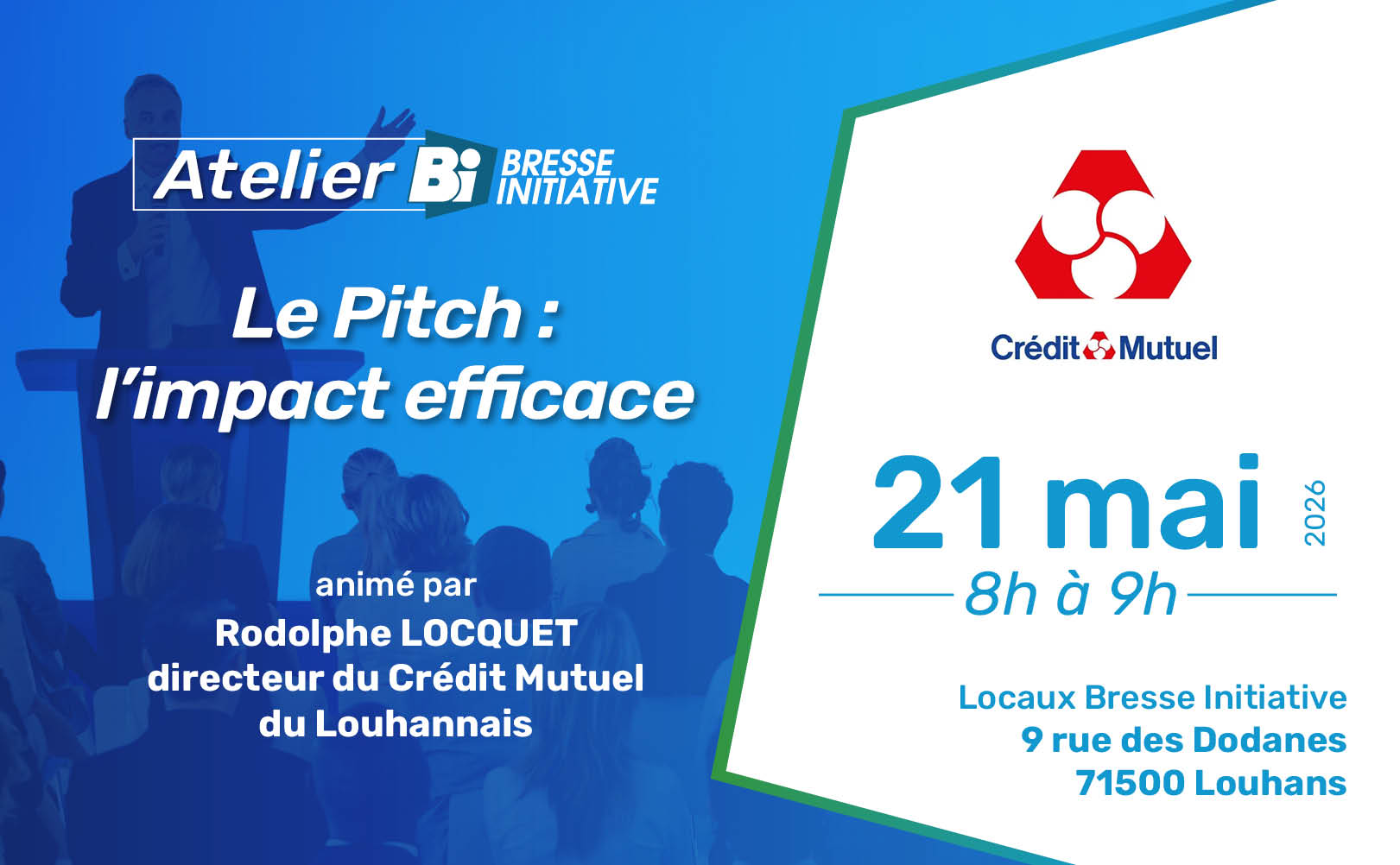 Atelier pitch « L’impact efficace » (21/05/2026) animé par le directeur du Crédit Mutuel du Louhannais